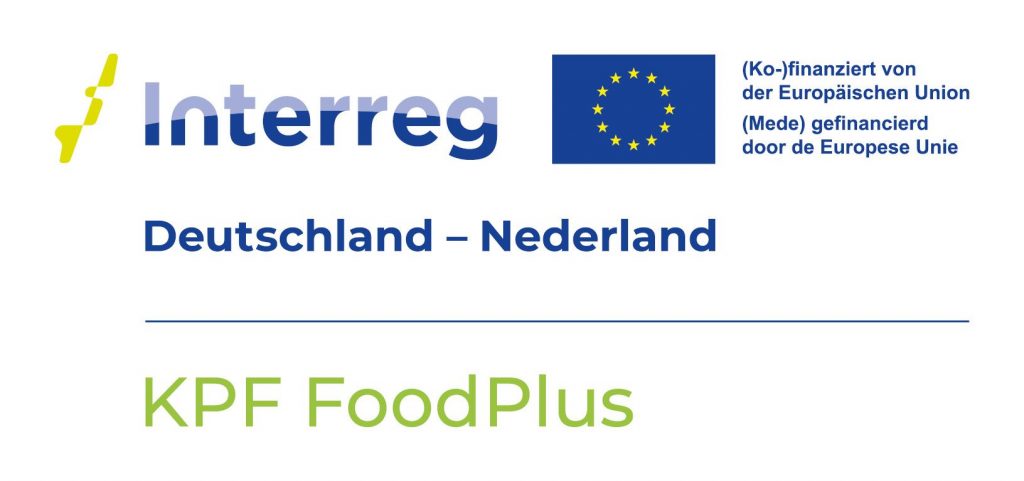 Das Projekt KPF FoodPlus wird im Rahmen des Interreg VI-Programms Deutschland-Nederland durchgeführt und durch die Europäische Union, das niederländische Wirtschaftsministerium (EZ), das MWIKE NRW und die Niedersächsische Staatskanzlei sowie die Provinzen Groningen, Fryslân, Drenthe, Flevoland, Overijssel, Gelderland, NoordBrabant und Limburg mitfinanziert.